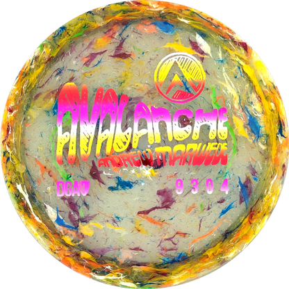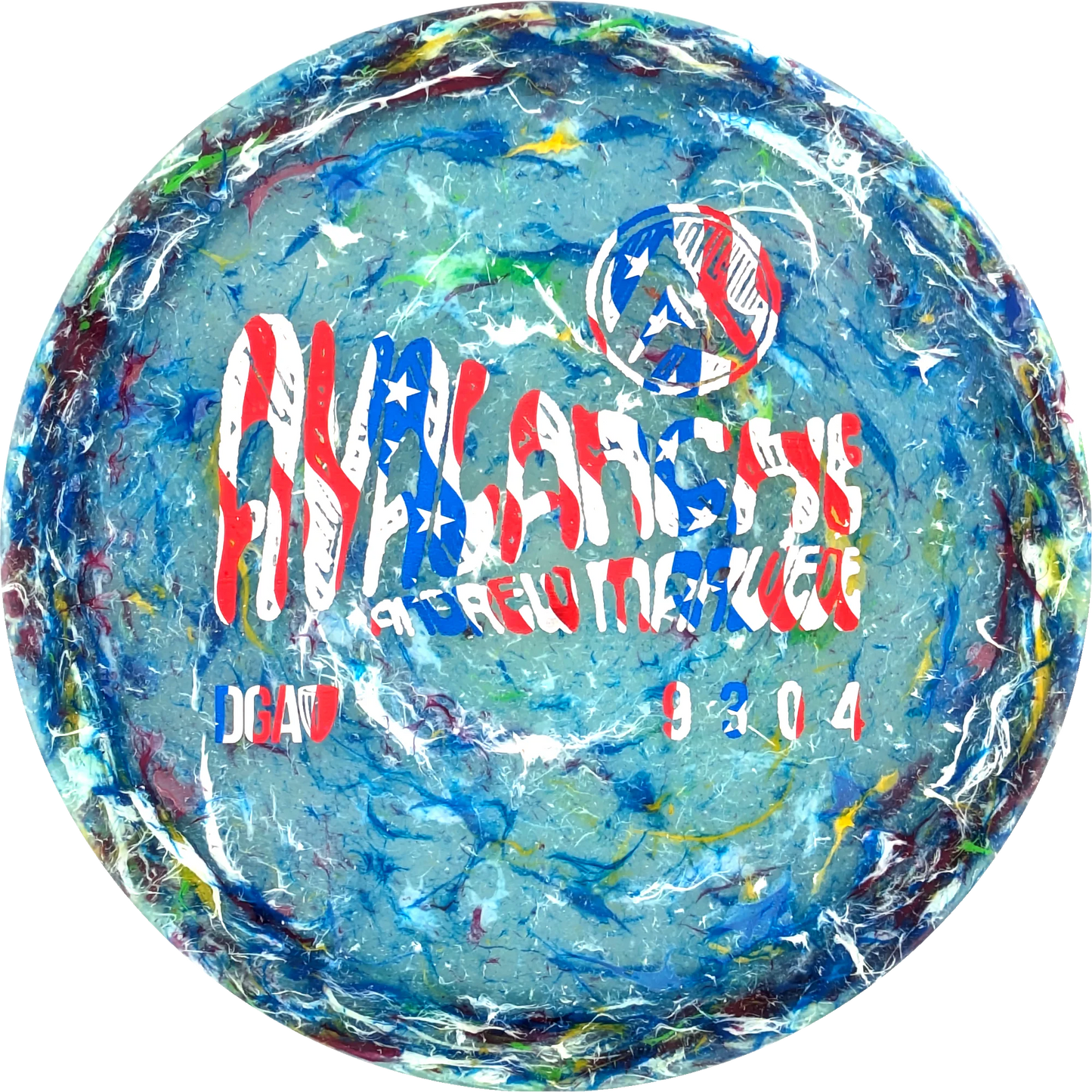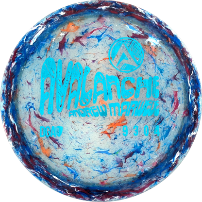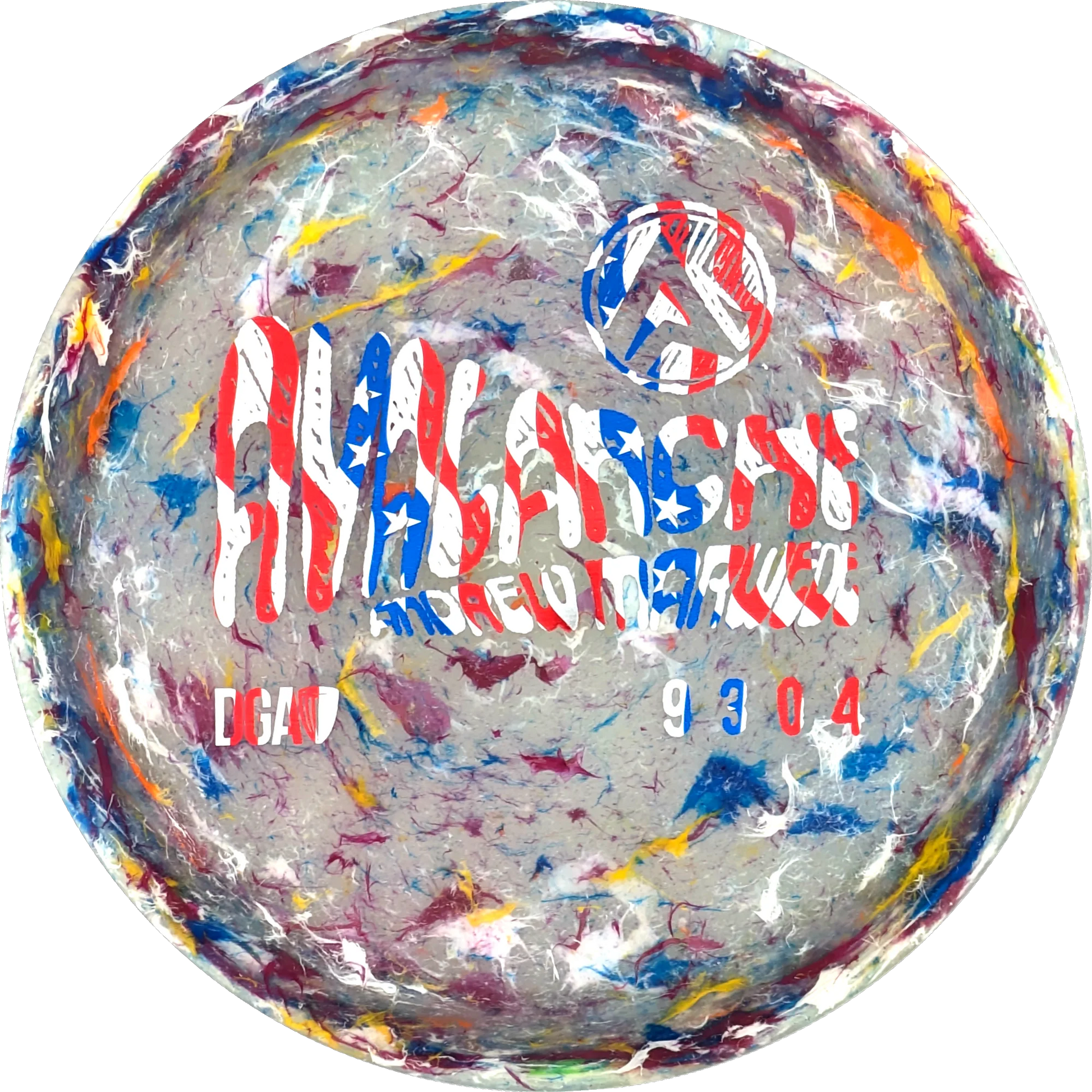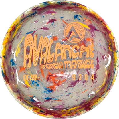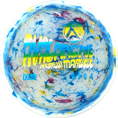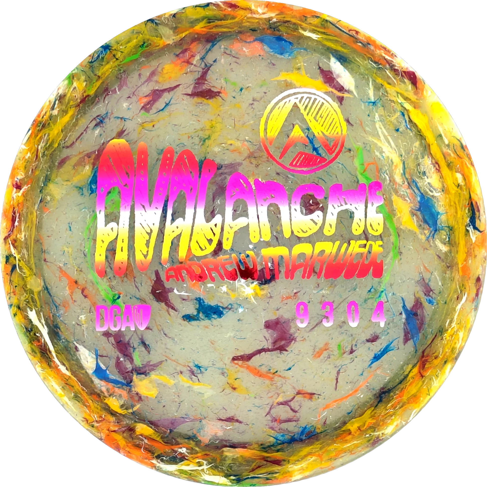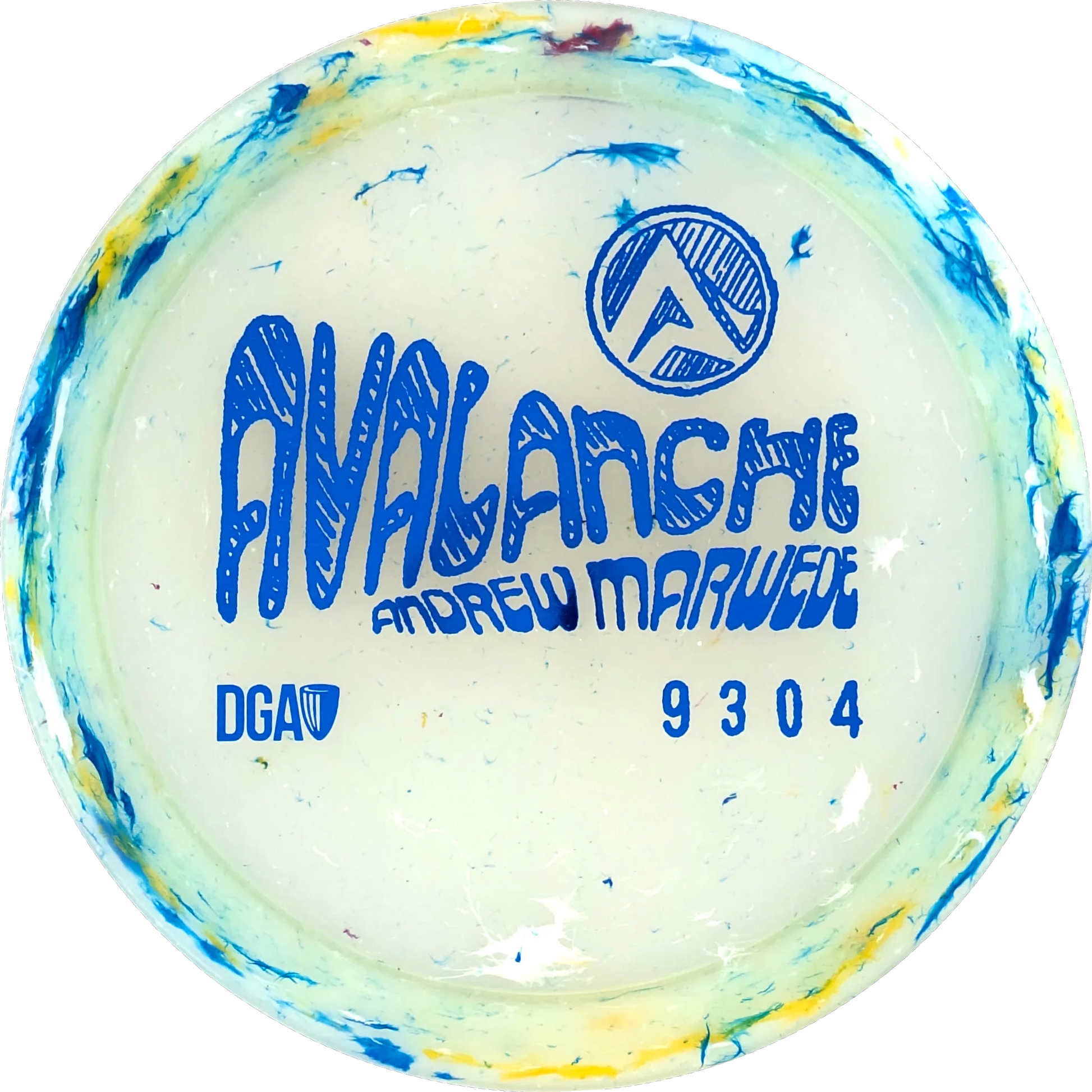 The Avalanche is an ultra-stable fairway driver, built for sure-footed lines, controlled throws in the wind and powerful drives. This version of the Avalanche is part of the DGA 2025 Tour Series for Andrew Marwede and is made from the new Granite plastic, which combines colorful marble patterns with a perfect balance of grip and flexibility. With low glide and a pronounced fade, the Avalanche provides security on both drives and approaches. An obvious choice for players looking for maximum stability and control.