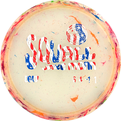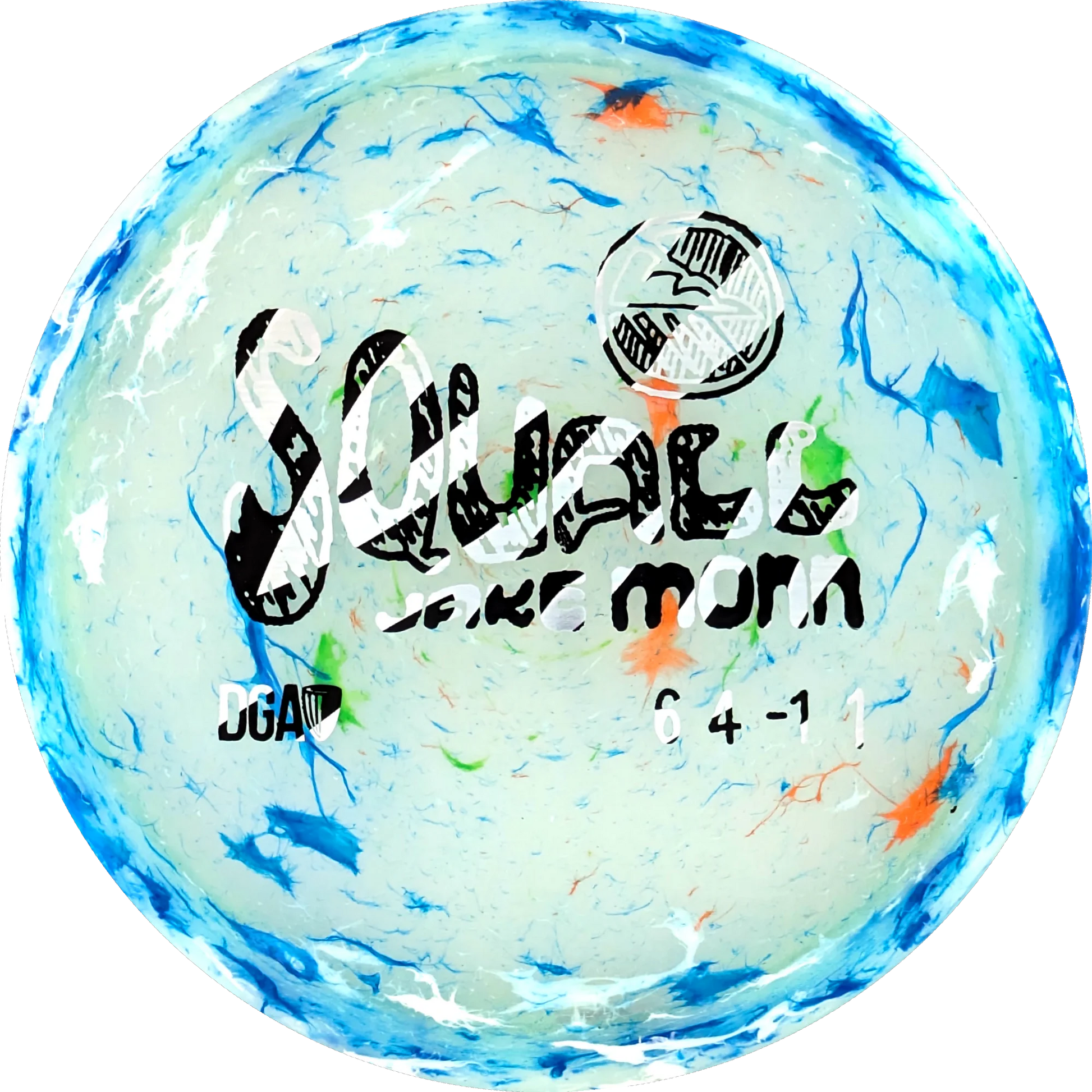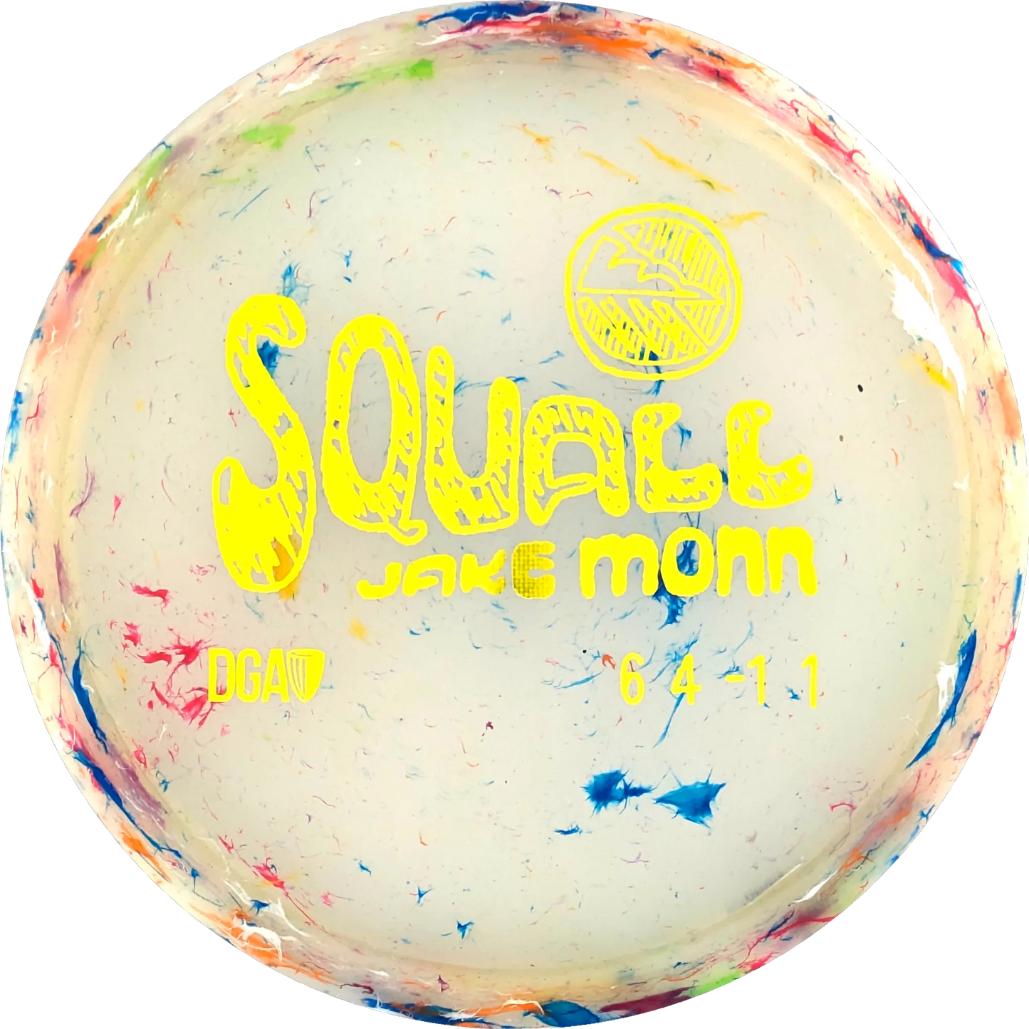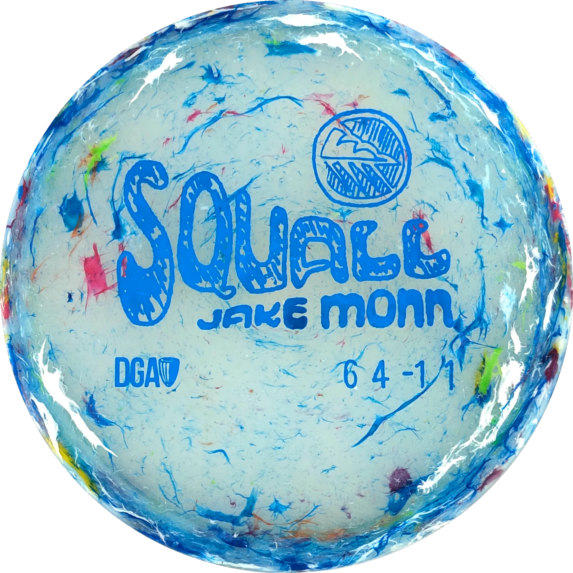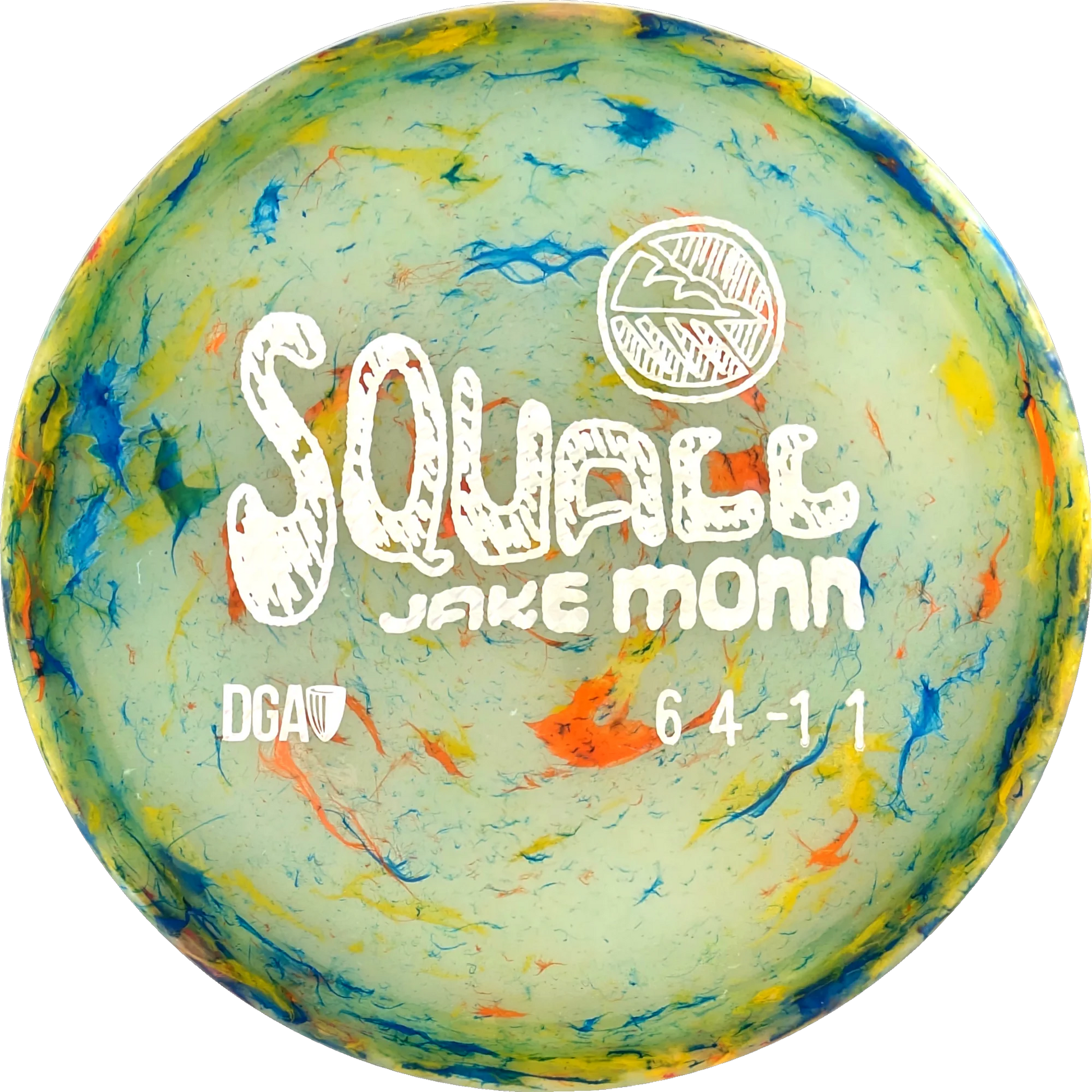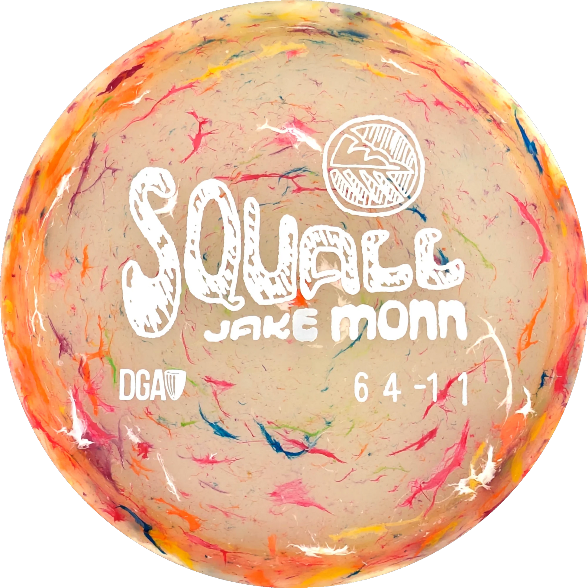 Squall is a versatile midrange with high glide and a slightly understable flight curve that allows for straight throws with controlled fade. This version of Squall is part of the DGA 2025 Tour Series and selected by Jake Monn. Made from DGA's Granite plastic, which ensures a good grip and gives each disc a unique marbled look. Squall is suitable for both long approaches and short drives, where precision and versatility are the keywords. A stable midrange for a wide range of throw types.