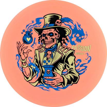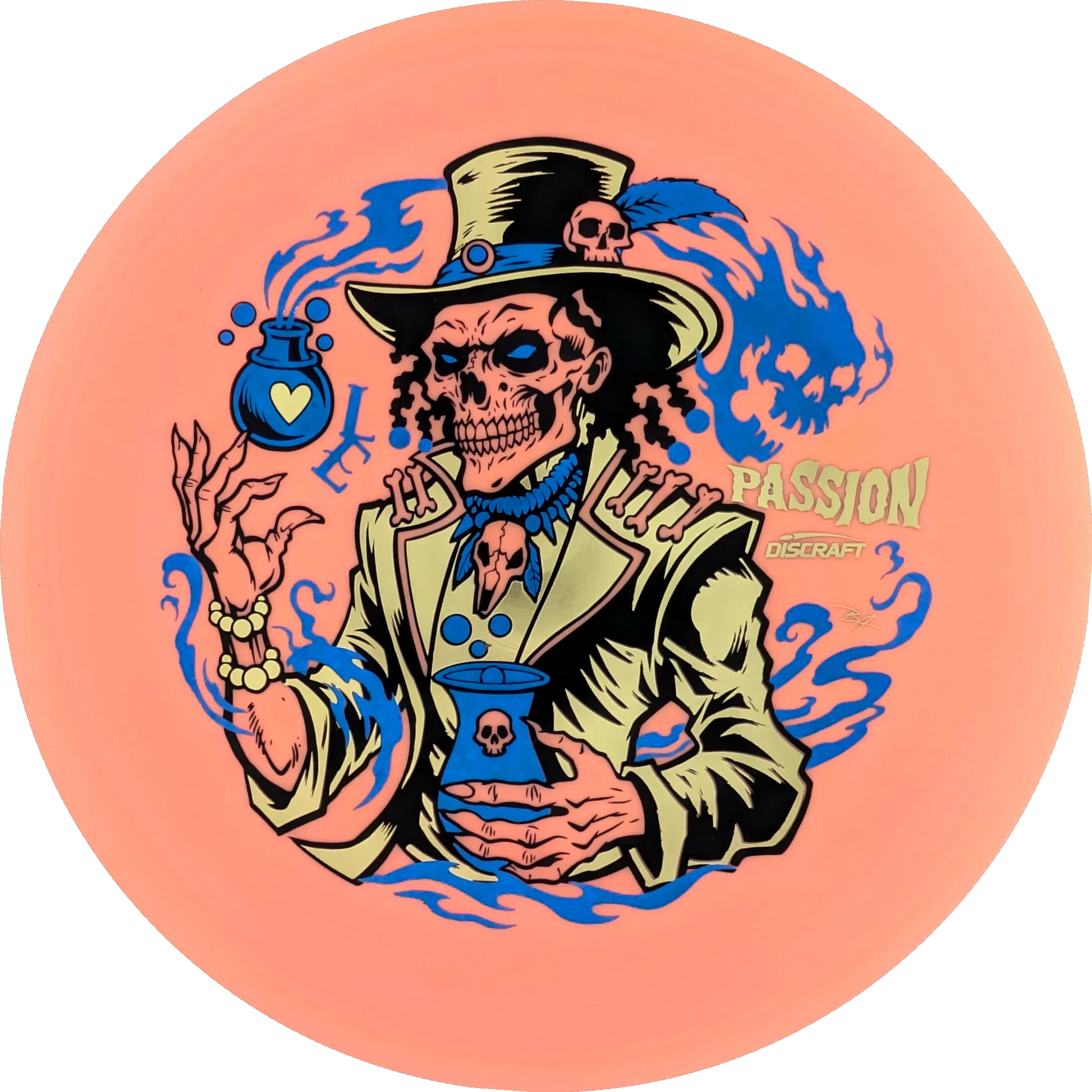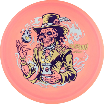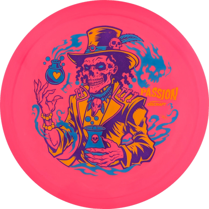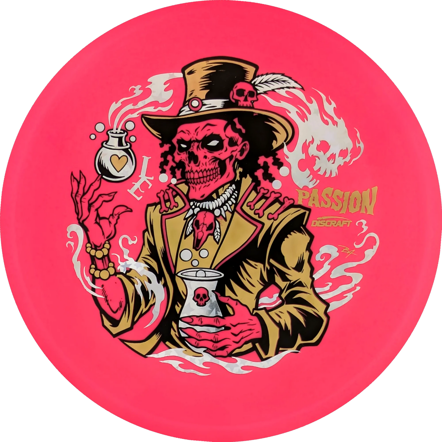 Passion is a versatile fairway driver with a straight and smooth flight, perfect for both beginners and experienced players. In this 2025 Ledgestone edition, you get it in ESP plastic, which combines vibrant colors and solid durability with Paige Pierce's signature touch. The disc has a slight turn and minimal fade, making it suitable for controlled throws through narrow lines. Paige is known for her creative and aggressive throwing style, and Passion perfectly matches her playstyle. A disc that offers both feel and precision in one.