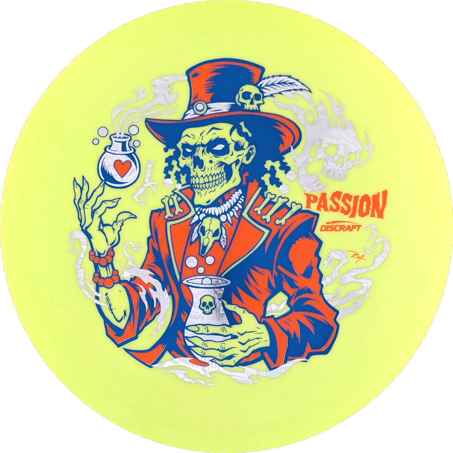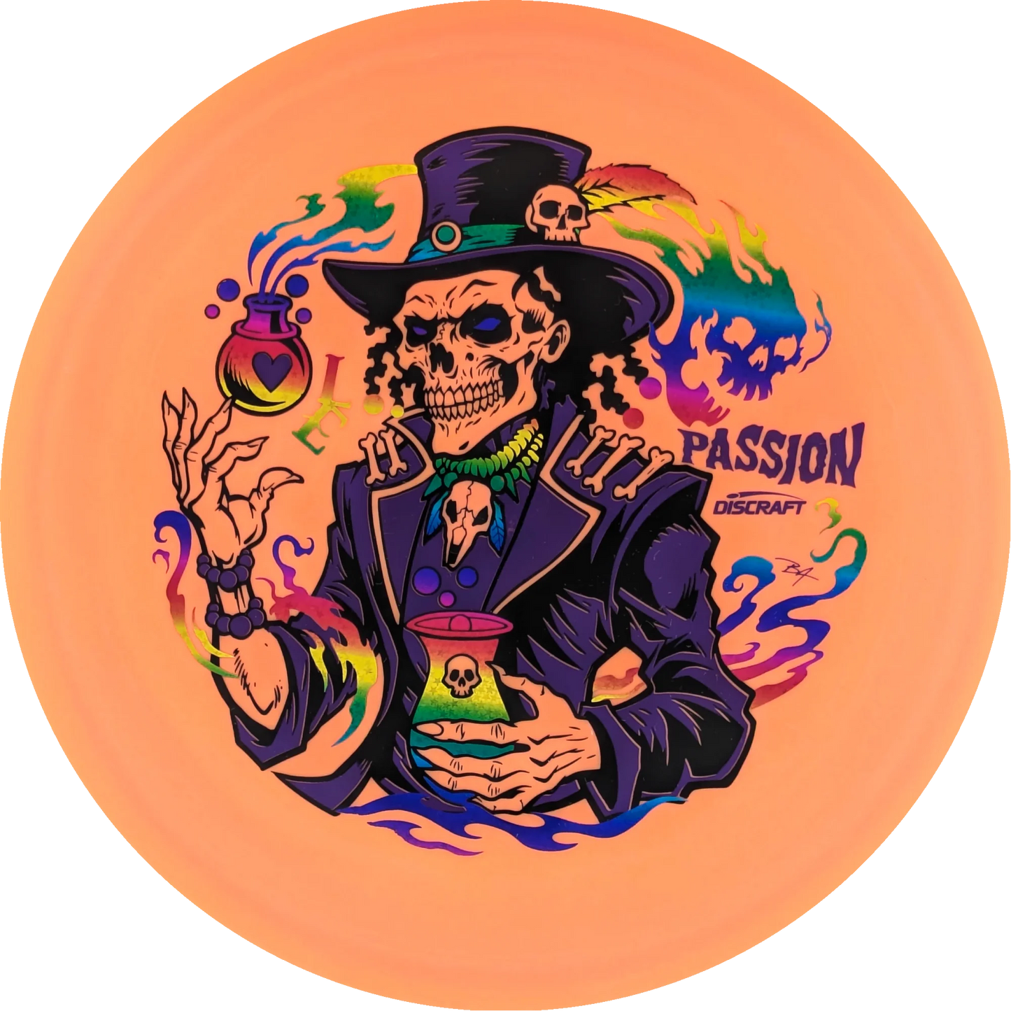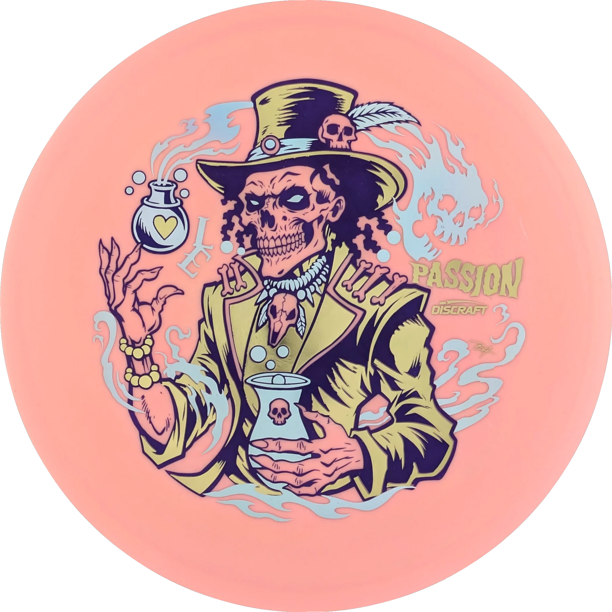 Passion is a versatile fairway driver with a straight and smooth flight, perfect for both beginners and experienced players. In this 2025 Ledgestone edition, you get it in ESP plastic, which combines vibrant colors and solid durability with Paige Pierce's signature touch. The disc has a slight turn and minimal fade, making it suitable for controlled throws through narrow lines. Paige is known for her creative and aggressive throwing style, and Passion perfectly matches her playstyle. A disc that offers both feel and precision in one.