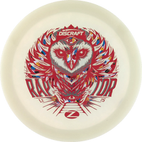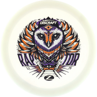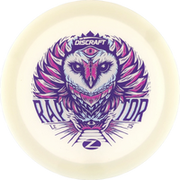 Raptor is an overstable fairway driver, suitable for windy conditions and demanding flight paths. It is available here in Z-Line UV TriFoil plastic, which reacts to sunlight and changes color—while maintaining the renowned durability of Z plastic. This release is part of this year's Ledgestone series, which annually brings unique molds and plastic variants in collaboration with Discraft. Raptor performs well for power throws and is a reliable choice on lines with room for fade.