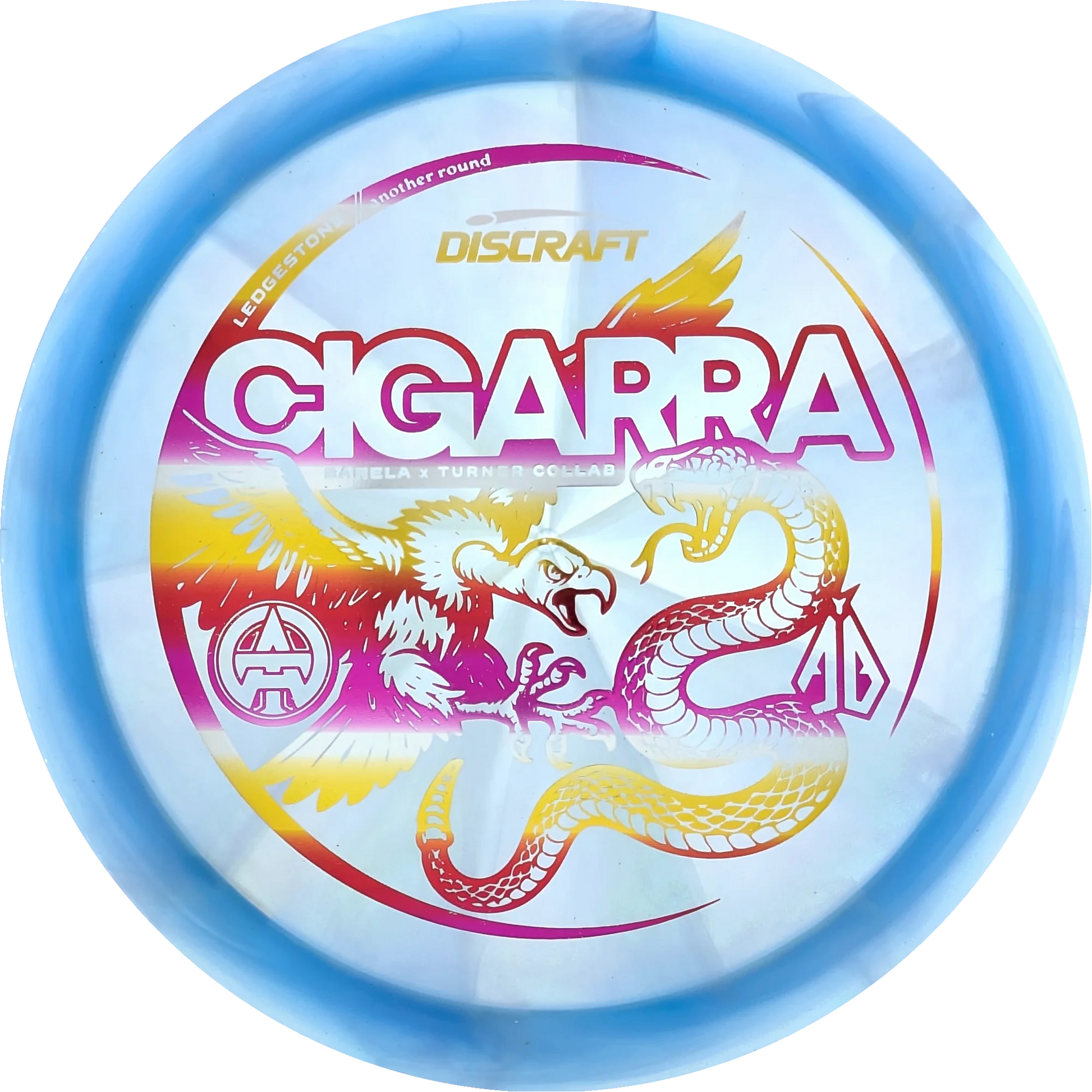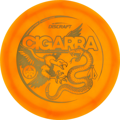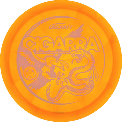 The popular Cigarra from Discraft is now released as a special Collab signature edition for Anthony Barela and Austin Turner. It comes in the beautiful Z-Swirl plastic, which is also used for Discraft's 2025 Tour Series this year.