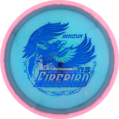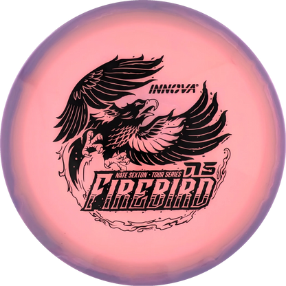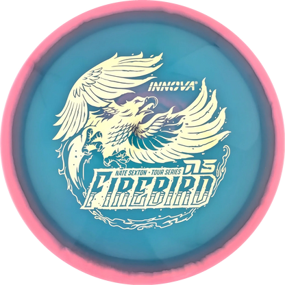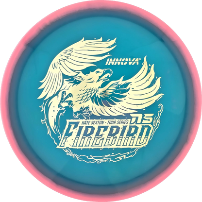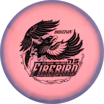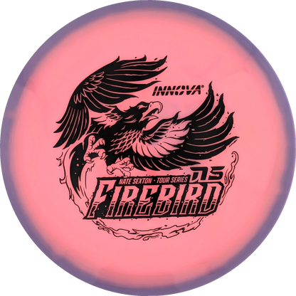 Innovas 2025 Nate Sexton Firebird has finally arrived and will be released this year in Innovas Proto Glow Halo Champion plastic. Sexton Firebirds have an almost legendary status among both players and collectors. They are released each year with a new design and have over time been available in various types of plastic. Nate Sexton's Firebirds are also affectionately known as "Sexybirds."
